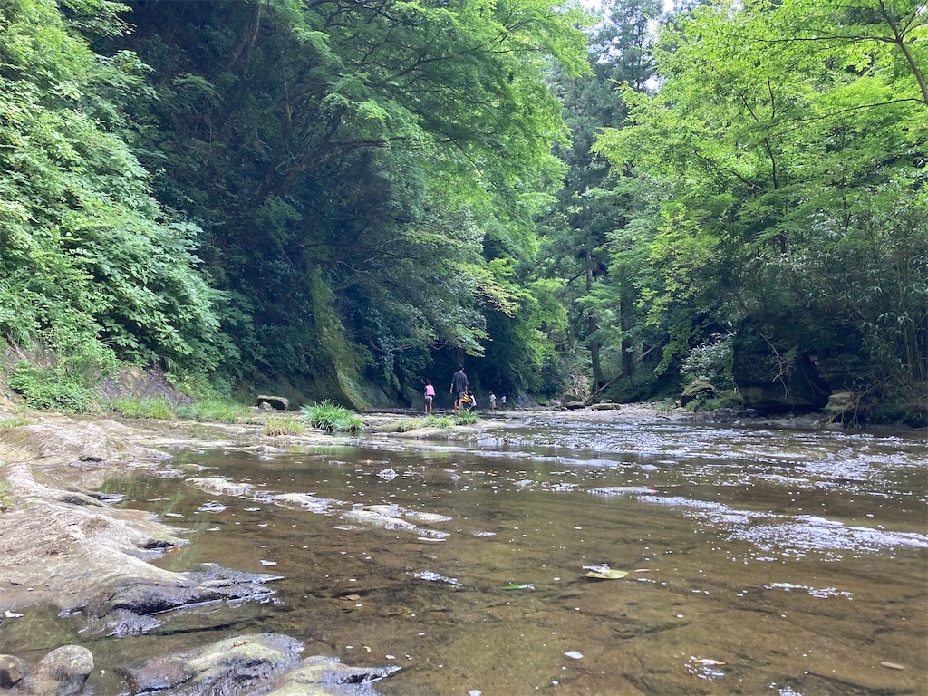 浅いエリアと深いエリアがあるようなので、お子さんの年齢に合わせて選ぶこともできますね。ただ、ホームページの「よくある質問」にもあるように、川底に苔がついている場所は滑りやすいです。アクアシューズを履いているとやや安心感ありです。